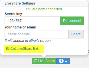 Enter a Secret key, which should be unique for each session, for your collaboration team (see the screenshot below). Use seven characters or more, preferably using a combination of letters, digits and certain special characters. For more detail, read more about the Real-time Sync security concerns.